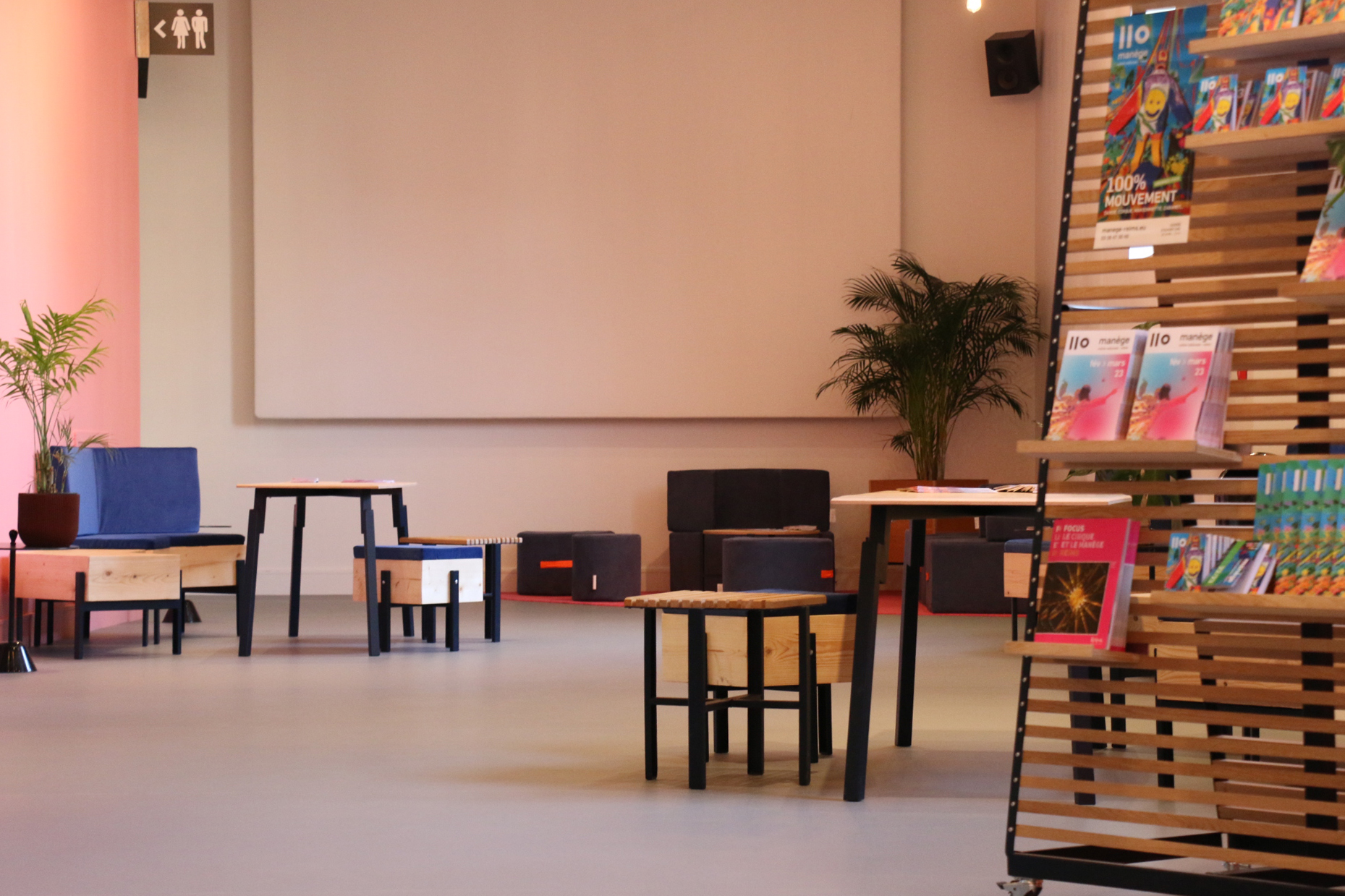 2022Projet d'aménagement du hall d'accueil du Manège de Reims, la Scène Nationale dédiée à la danse contemporaine, au cirque et aux marionnettes de Reims.