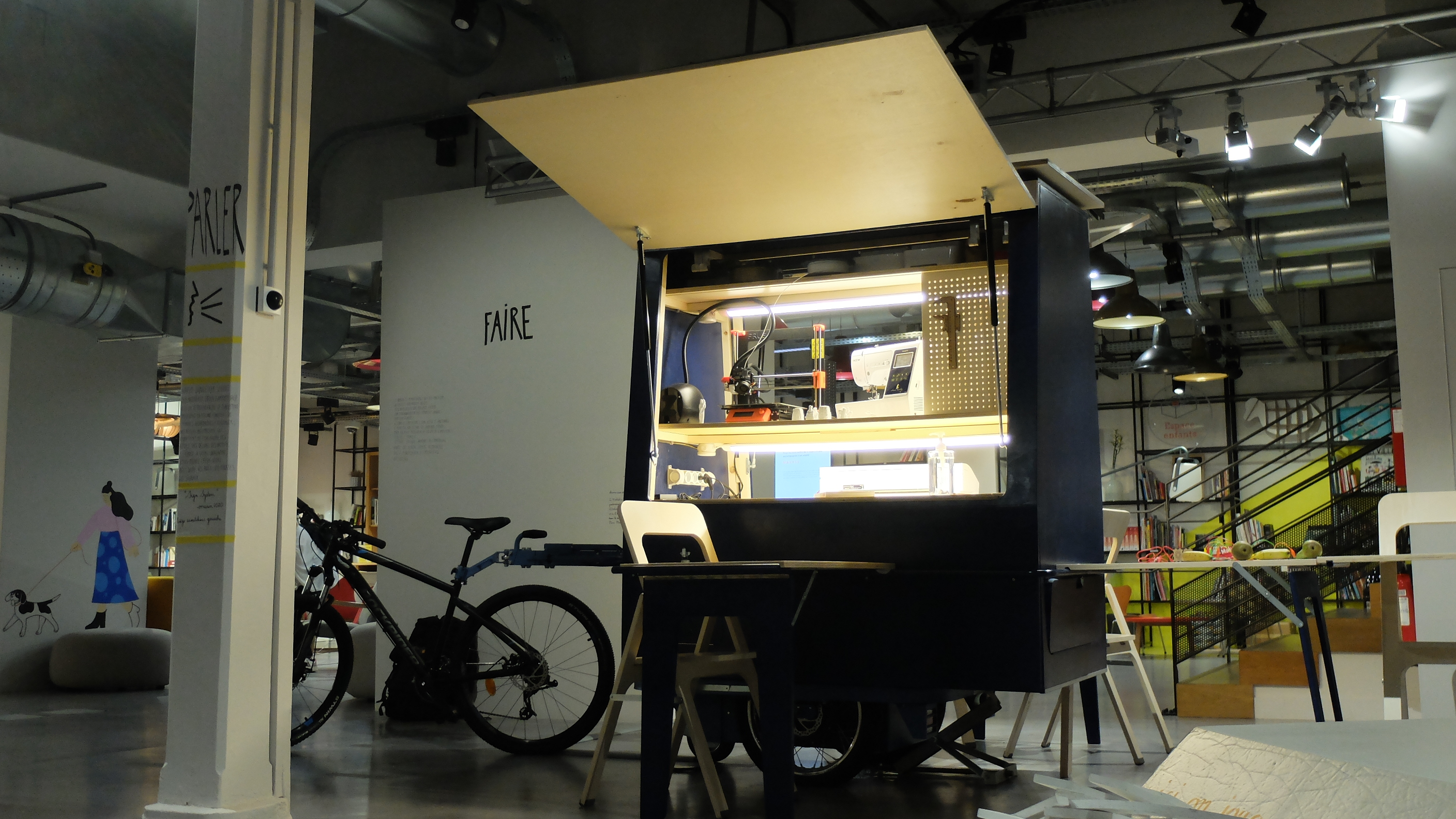 Véritable FabLab compact et itinérant, ce projet cherche, au travers d’une micro-architecture mobile et agile, à déployer auprès de différents publics des ateliers de sensibilisation et d’initiation aux technologies de fabrication numériques afin de découvrir, par la pratique guidée, ces technologies de création et de personnalisation.