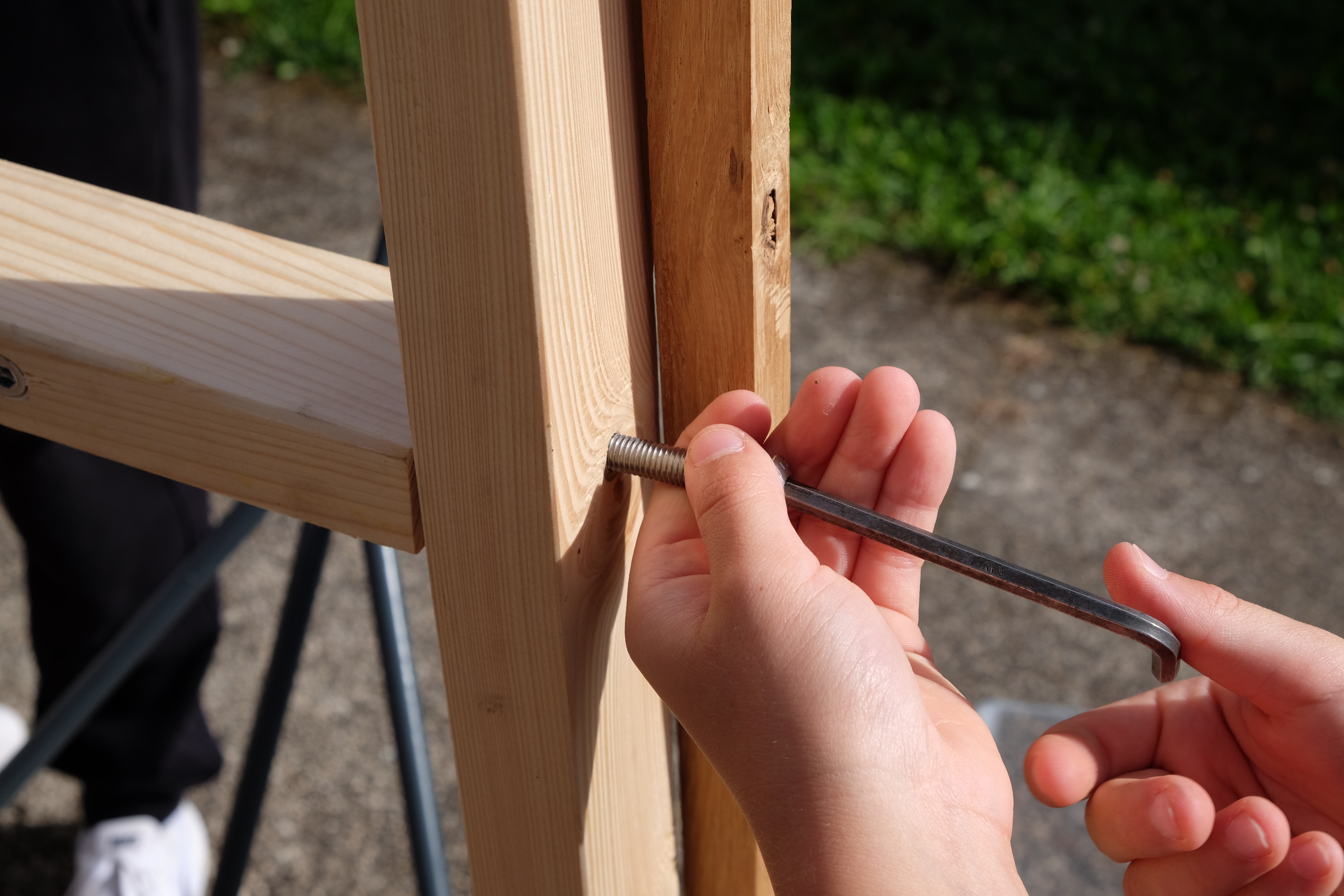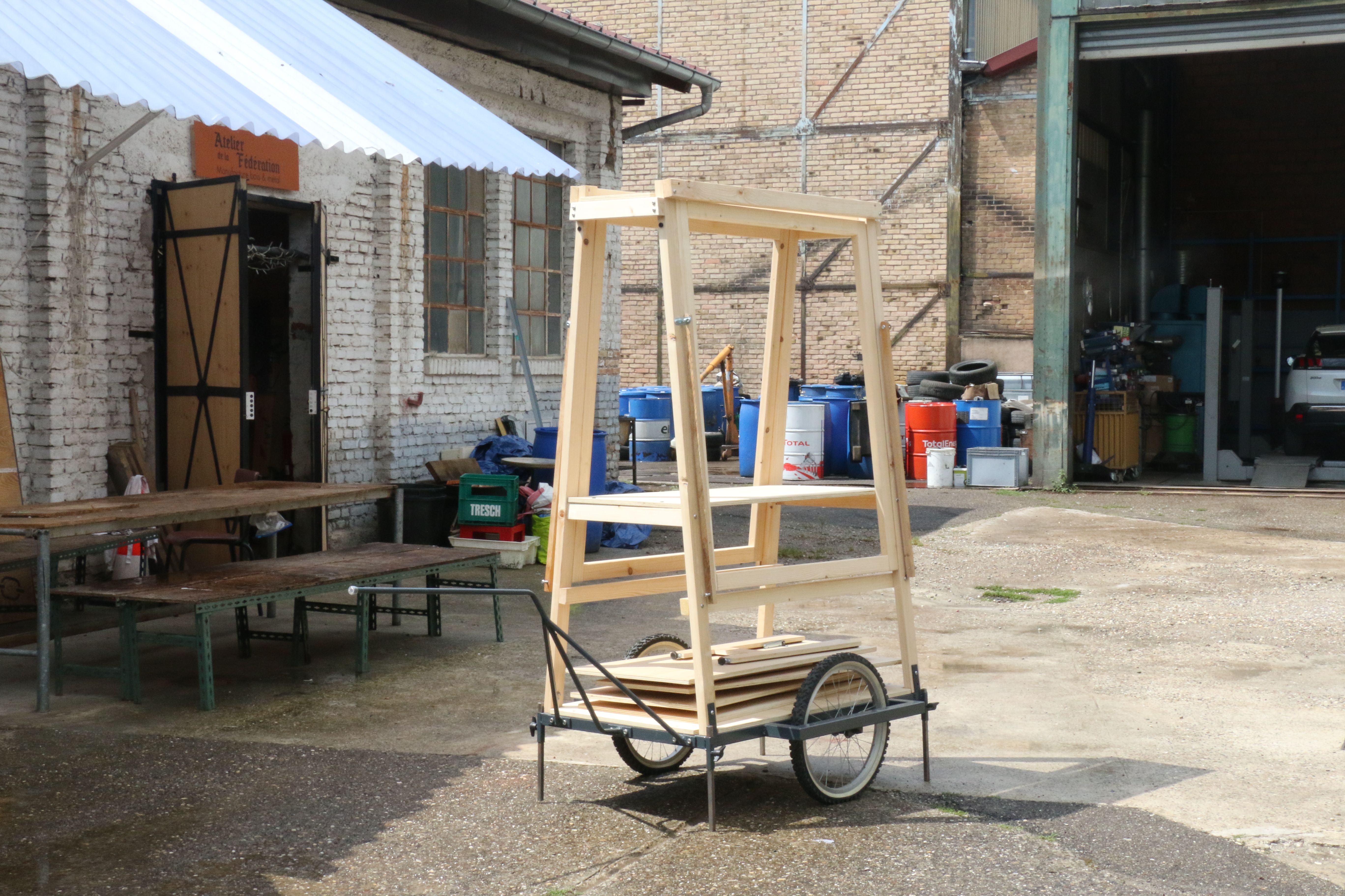 Elle a aussi été conçue montable et démontable afin de se transporter facilement et d’être construite avec les participant.e.s des ateliers.