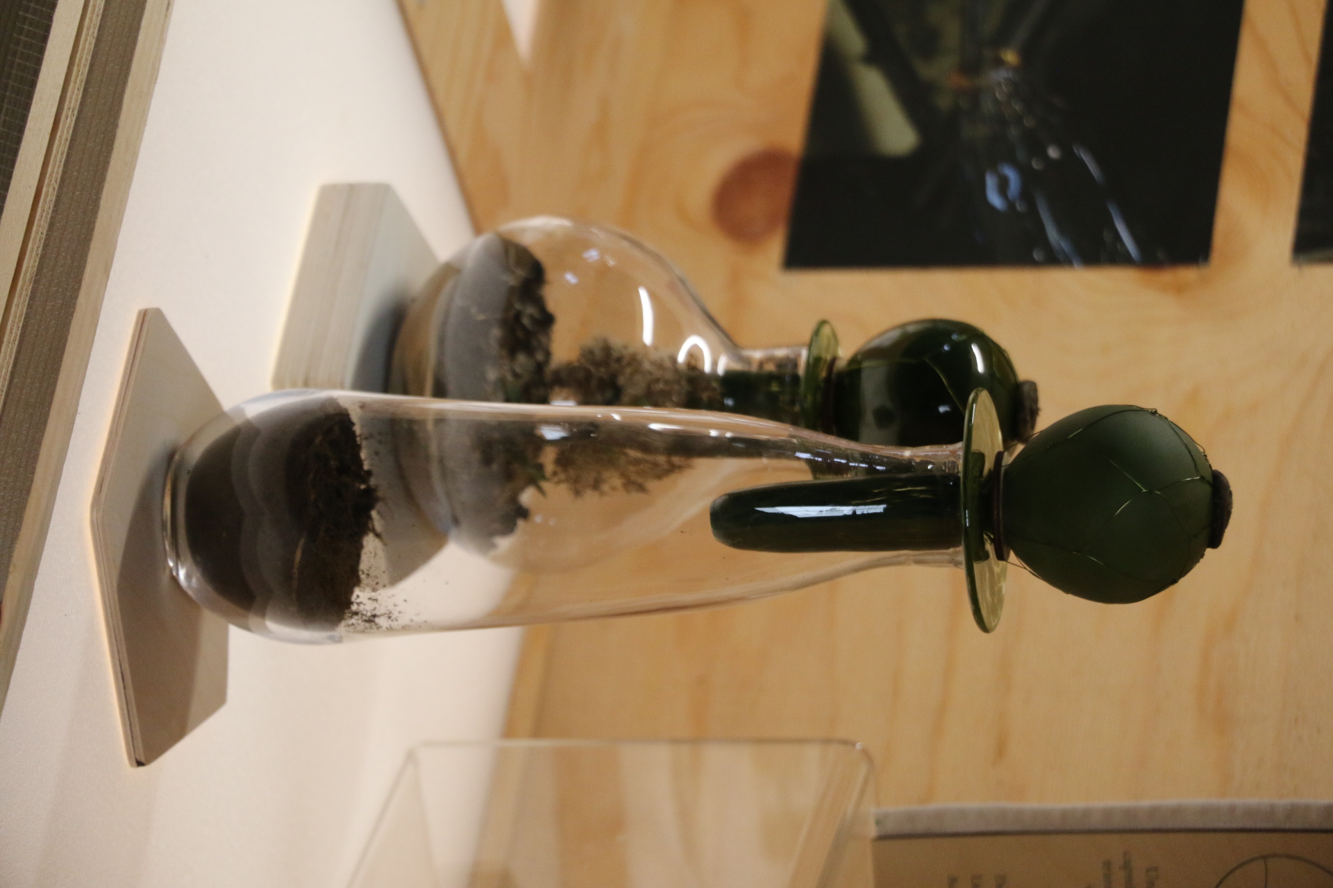Formellement, il s'agit de 3 contenants distincts en verre soufflé, rappelant l'univers du flaconnage. Un grand ballon contient le substrat inerte, une fiole contient elle les graines de la plante en voie de disparition, et une goutte contenant la juste quantité d'eau pour activer le terrarium est encapsulée au dessus. Ces éléments sont séparés par des bouchon de liège et de cire, garantissant l'hermétisme des différents éléments.