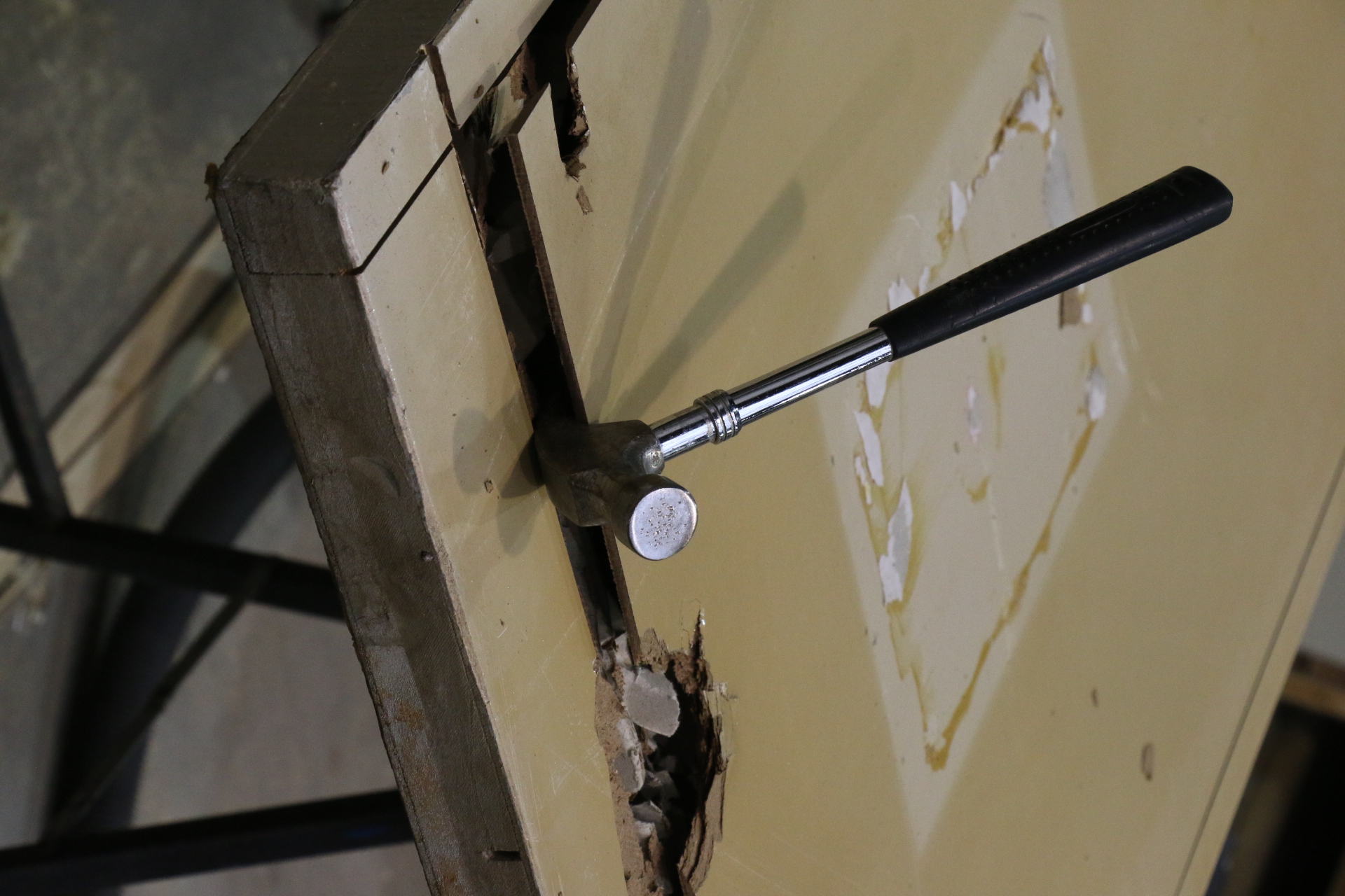 L’objectif de cette résidence, orientée recherche et développement, était de réfléchir à la faisabilité et la pertinence de la revalorisation des portes intérieures issues de la déconbstruction de bâtiments en tant que mobilier.