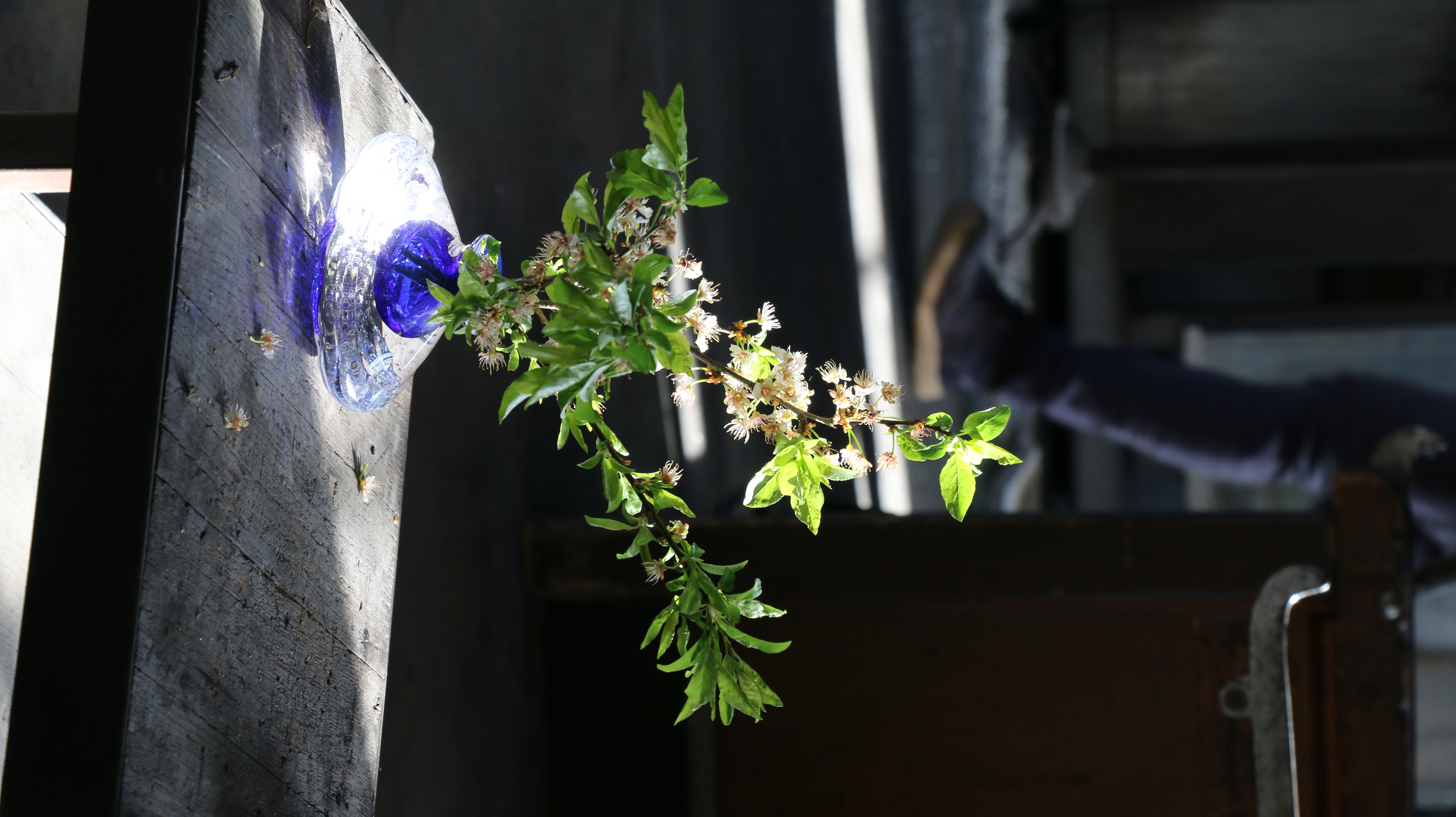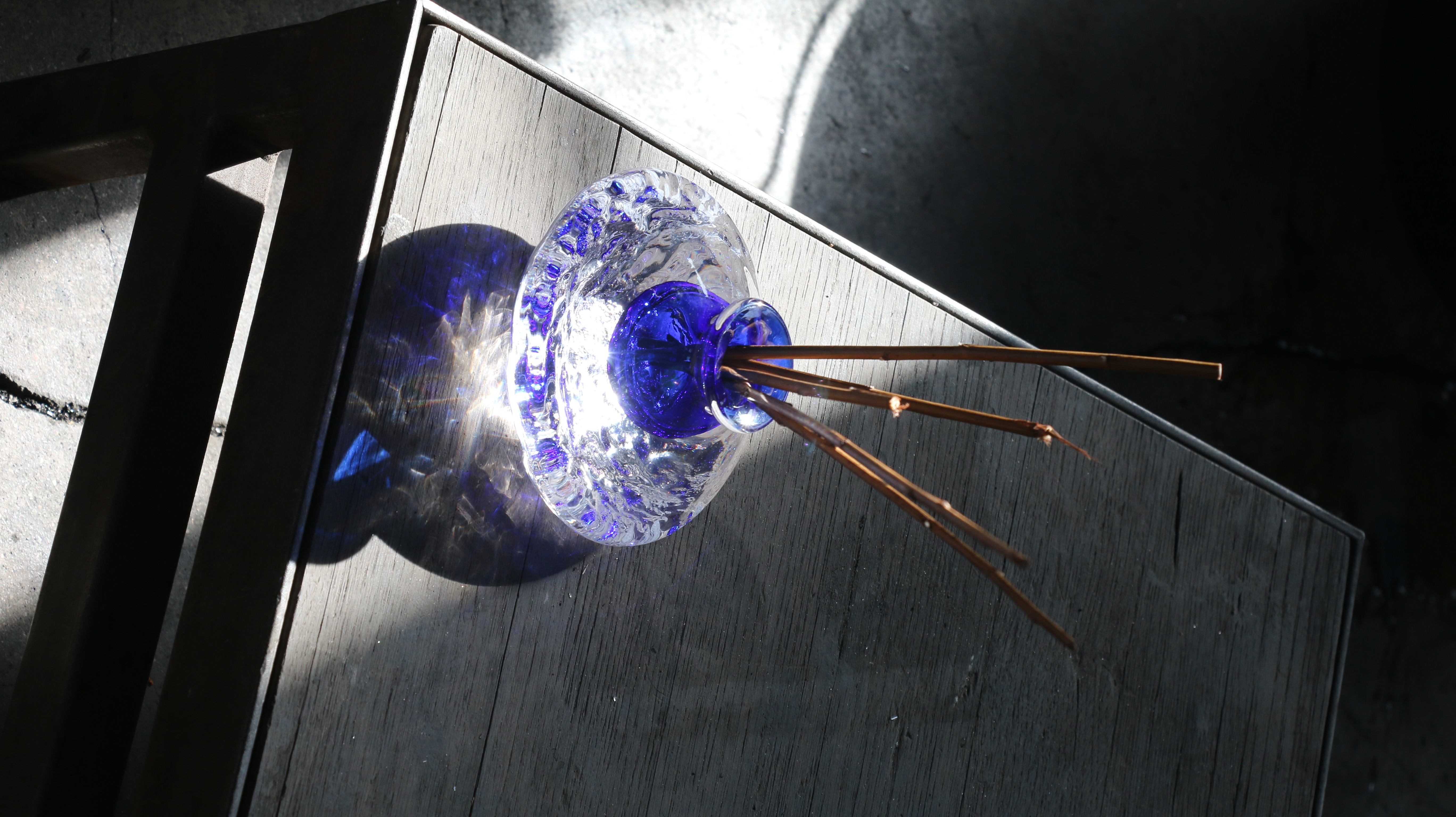 Cet objet-poème incarne l’équilibre et la tension entre le verre et le végétal ainsi qu'une une ode au souffle, celui du verrier comme celui du vent.